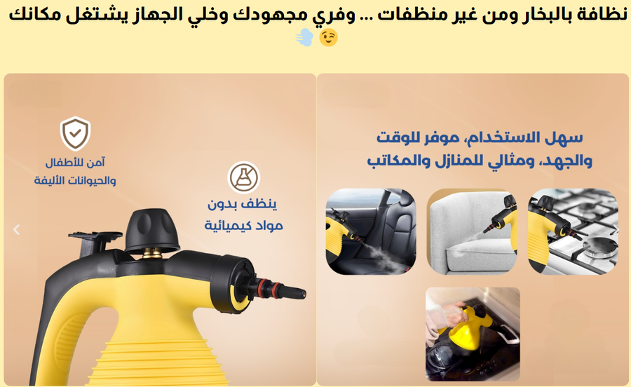 مميزات الجهاز تشمل: تنظيف فعال بدون مواد كيماوية، تصميم خفيف وسهل الحمل، وزر أمان لحماية من سخونة زائدة. احصل على نتائج مذهلة في التنظيف وسهولة الاستخدام مع هذا الجهاز الرائع!